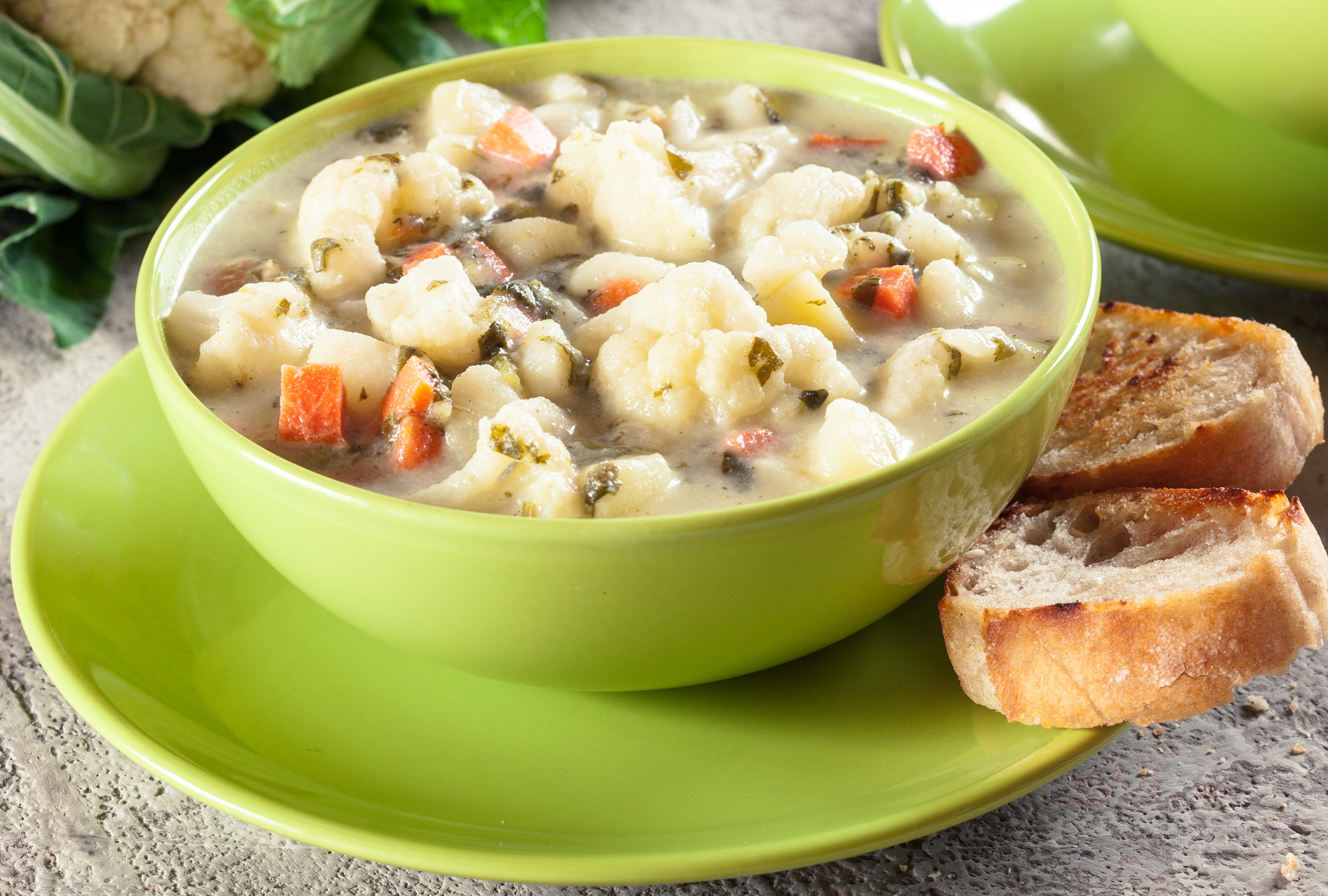 Zupa kalafiorowa to typowa zupa jarzynowa, w której główną rolę odgrywa, jak nietrudno się domyślić, kalafior ;) Może być ona przyrządzona na mięsie, lub w wersji wegetariańskiej, zależnie od bulionu na którym chcemy ją przygotować. Ma ona delikatny smak i dużo wartości odżywczych. Poniżej znajdziesz prosty przepis na typową zupę kalafiorową.