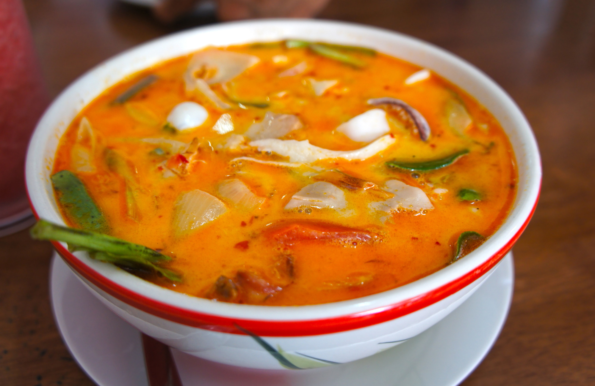 Zupa Tom Yum to prawdziwy specjał kuchni tajskiej, oraz obok Pad Thai najbardziej znana tajska potrawa. Można by powiedzieć, że tak jak zupa Pho jest azjatyckim odpowiednikiem naszego rosołu, tak Tom Yum jest azjatyckim odpowiednikiem naszej… pomidorówki :) Aczkolwiek jest ona znacznie bardziej wyrazista i bogata w smaku. Poniżej znajdziesz prosty przepis na zupę Tom Yum.